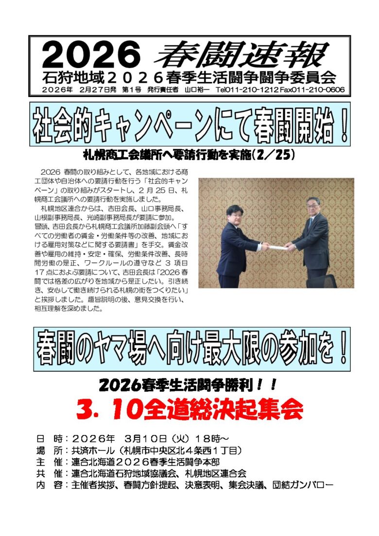 れんごう札幌 2026年2月5日 493号を発行しました。
